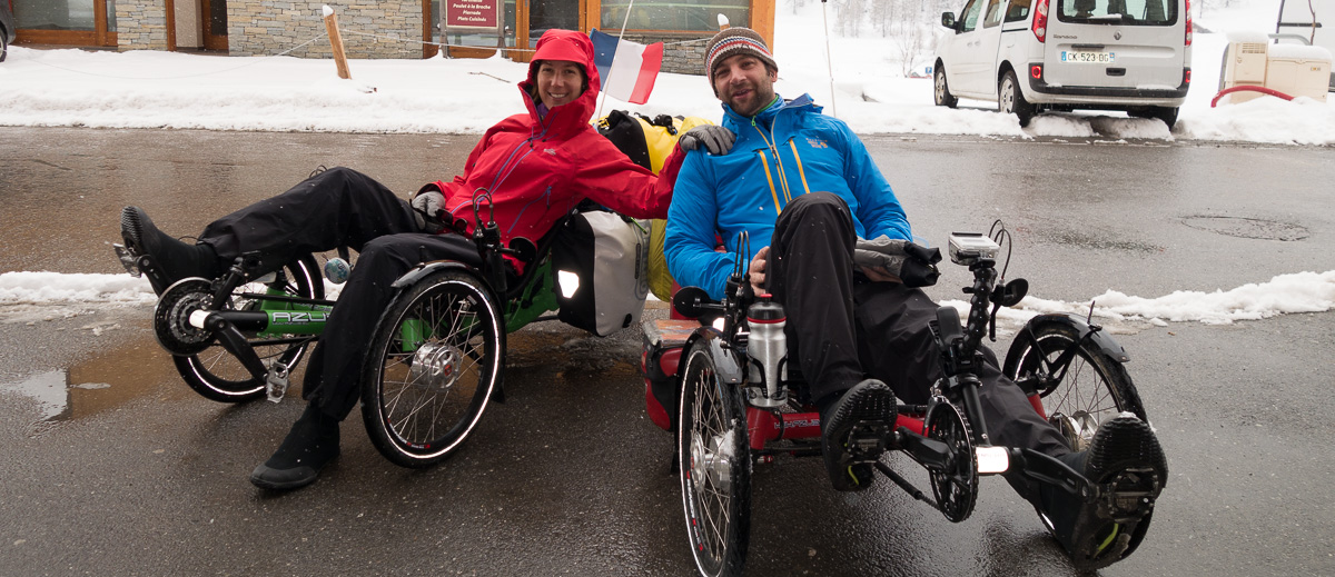 Nous avons bien rigolé sur votre aventure avant le Lautaret car nous avons été un jour coincé au col à tenter de mettre les chaînes sous une avalanche…vous avez bien fait de faire le saut en train, mais on voit que c’est aussi l’aventure de monter avec les trike….