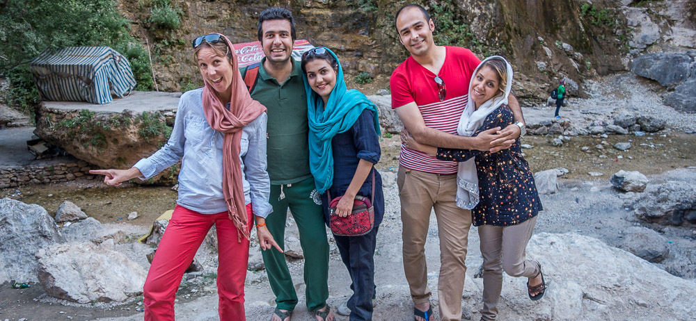 Jeudi 21 août – c’est le début du week-end pour les Iraniens. Mernoush, son mari, Shahab et un couple d’amis nous emmènent loin de la ville pour une balade dans la montagne où nombre d’iraniens viennent chercher la fraîcheur.