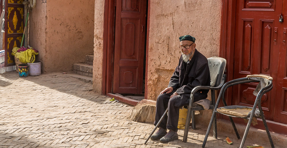 Arrivés le lendemain à Kashgar. Après ces 2 semaines passées, quasi-seuls, au milieu de la nature, cela nous fait bizarre de nous retrouver dans une grande ville au milieu du trafic. La vieille ville, où nous logeons, contraste avec les nouveaux quartiers où buildings et grandes enseignes ont quasiment tout envahi sur leur passage. Malgré tout, la vieille ville a su garder son charme et ses savoir-faire. Chaque rue est dédiée à un artisanat/ métier : cuivre, bois, fourrure, épices et plantes médicinales… Ici vivent les Ouïghours, une communauté musulmane. En se promenant dans les rues, on se sent plus proches des Stan que de la Chine.