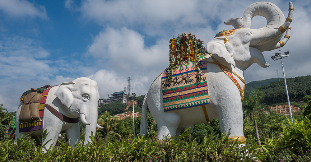 Le lendemain, on est heureux de découvrir qu’un petit-déjeuner est compris dans le prix de la chambre. Bon faudra encore attendre pour les tartines et les céréales car c’est bol de noodles ! Comme on en mange déjà à tous les repas, on passe notre tour et on se rabat sur les œufs durs et ce qui ressemble à du riz au lait. Nos routes se séparent ce matin. Lili et Danny souhaitent passer un peu de temps dans le sud de la Chine tandis qu’on a décidé d’accélérer la cadence vers le Laos en prenant un bus. Donc après le train couchette, nous testons le bus semi-couchette (même si le trajet ne dure que l’après-midi). Arrivés à Jingjong le soir même, c’est le dépaysement ! Fini les grands buildings et la grisaille, ici, c’est grand ciel bleu, palmiers et fruits exotiques sur les étales. Ça fait vraiment vacances, on se croirait un peu sous les tropiques vu la température et le taux d’humidité.